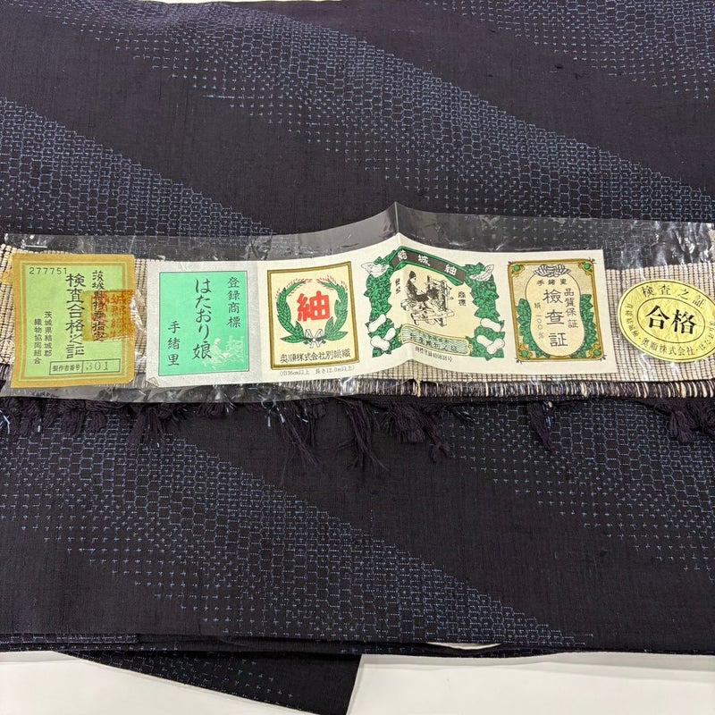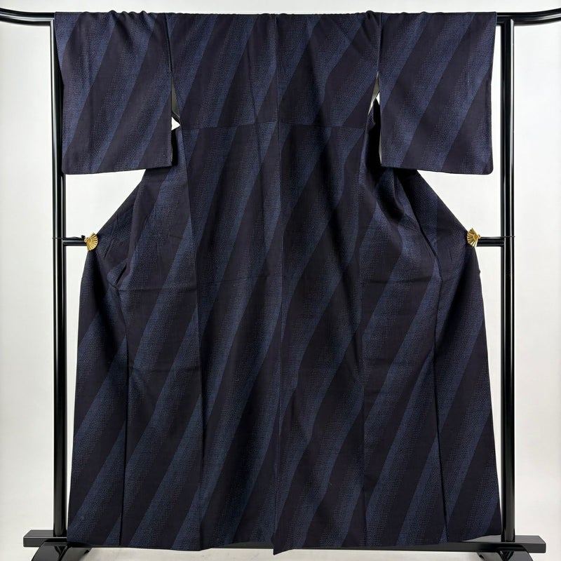 【結城紬】 青系 濃紺 逸品 B 約160cm~約169cm 裄丈65cm (M)size 袖丈49cm 30000- 五万以下