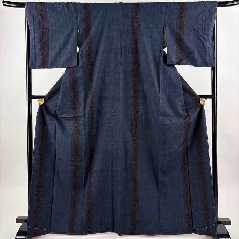 【結城紬】 青系 紺色 逸品 A 約160cm~約169cm 裄丈67cm-68cm (L)size 袖丈48cm 30000- 美品 五万以上