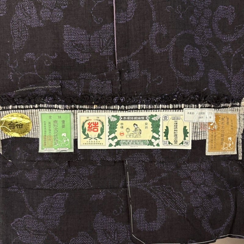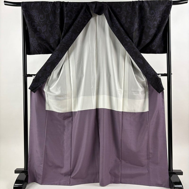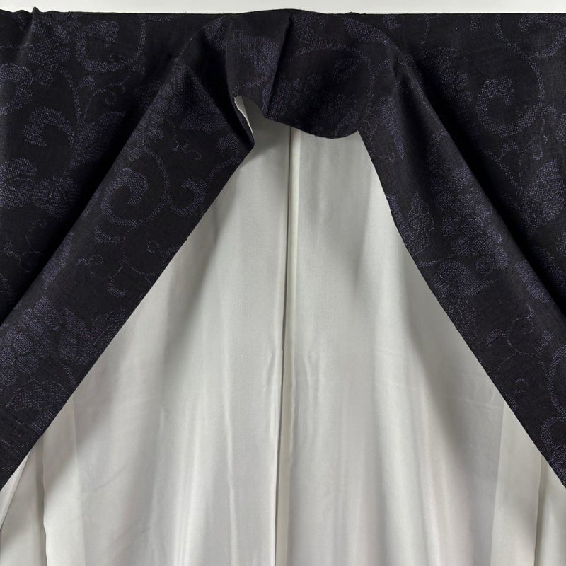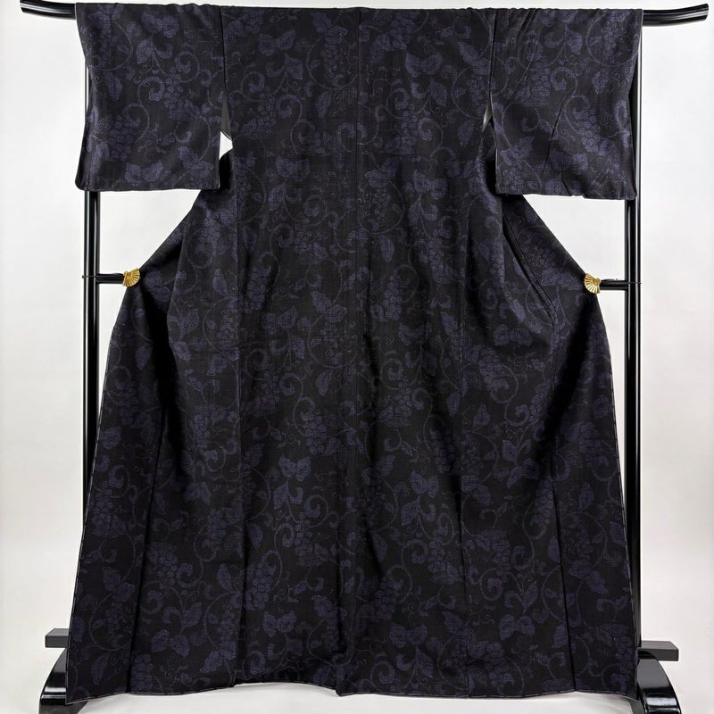 【結城紬】 黒系 墨色 逸品 A 約170cm~約179cm 裄丈69cm以上 (L)size 袖丈49cm 30000- 美品 五万以上