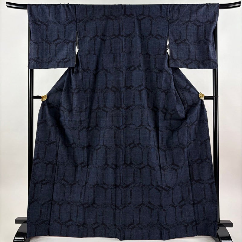 【結城紬】 青系 紺色 逸品 B 約160cm~約169cm 裄丈67cm-68cm (L)size 袖丈49cm 30000- 五万以上
