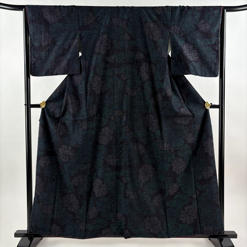 【結城紬】 黒系 黒 逸品 A 約160cm~約169cm 裄丈65cm (M)size 袖丈49cm 30000- 美品 五万以上