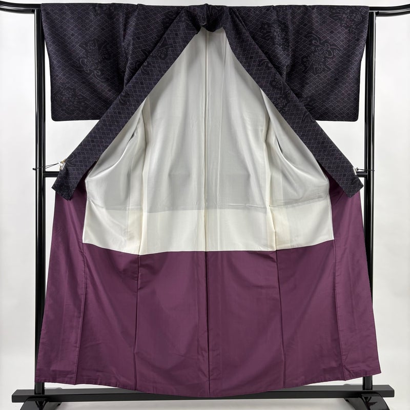 【結城紬】 紫系 紫 逸品 B 約150cm~約159cm 裄丈63cm-64cm (M)size 袖丈46cm以下 30000- 五万以上