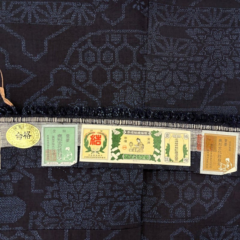 【結城紬】 青系 紺色 逸品 A 約160cm~約169cm 裄丈65cm (M)size 袖丈49cm 30000- 美品 五万以上