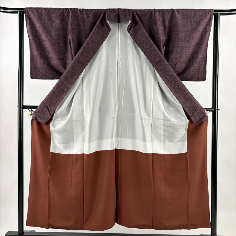 【結城紬】 紫系 紫 秀品 A 約150cm~約159cm 裄丈63cm-64cm (S)size 袖丈47cm 7990-9980 美品 二万以下