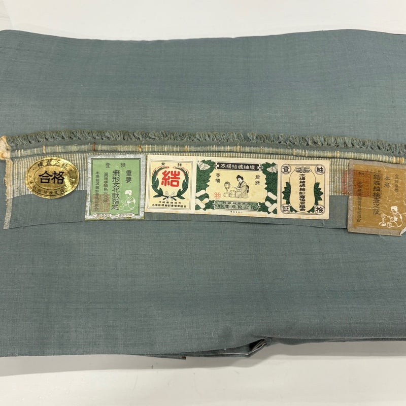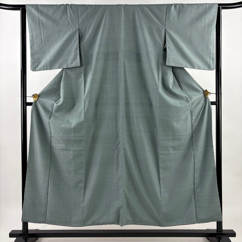 【結城紬】 灰色系 灰緑 逸品 A 約150cm~約159cm 裄丈63cm-64cm (M)size 袖丈47cm 30000- 美品 五万以上