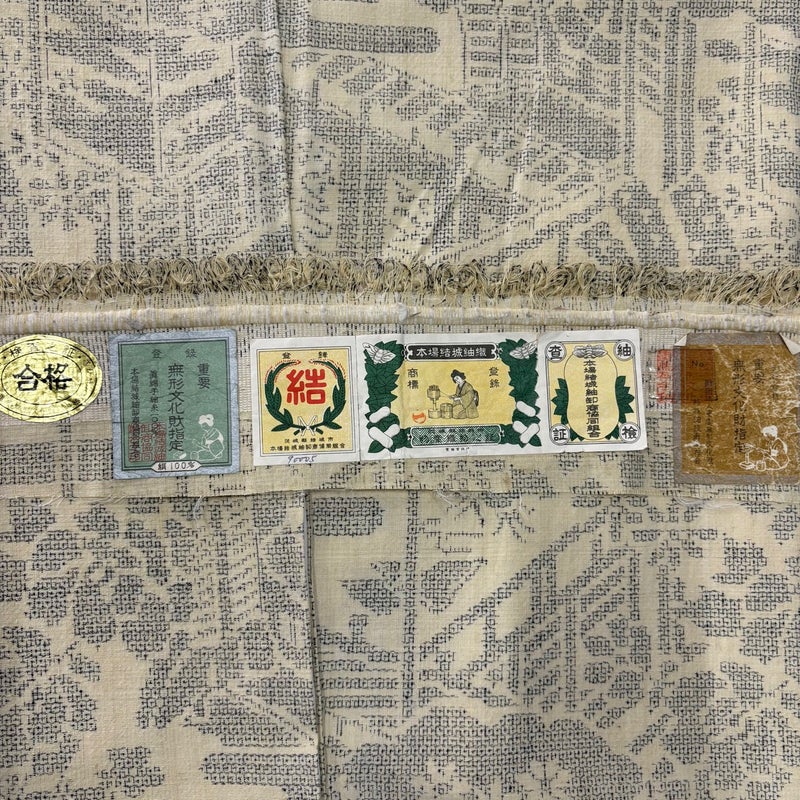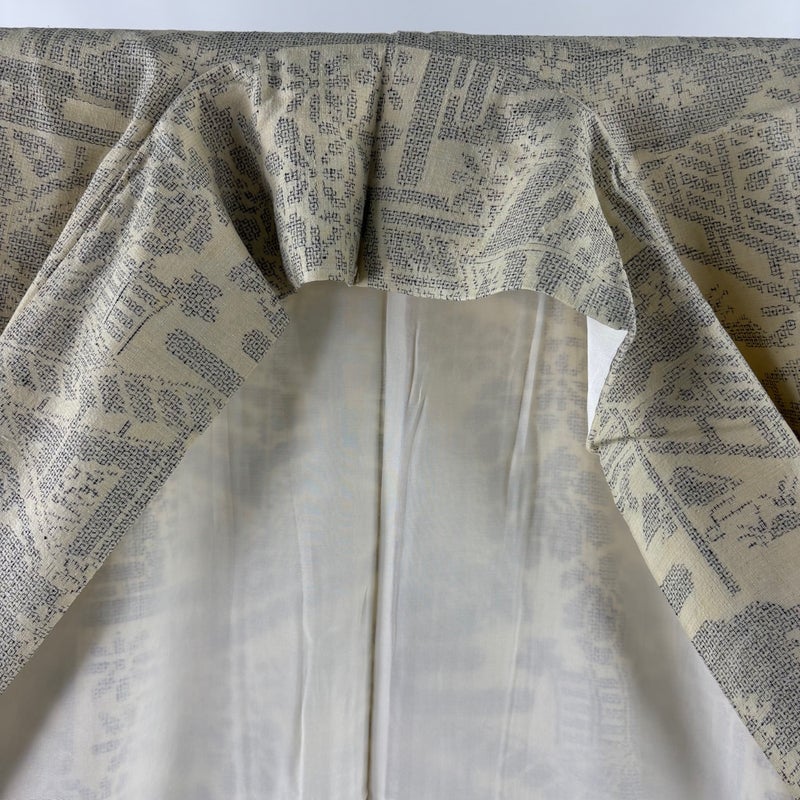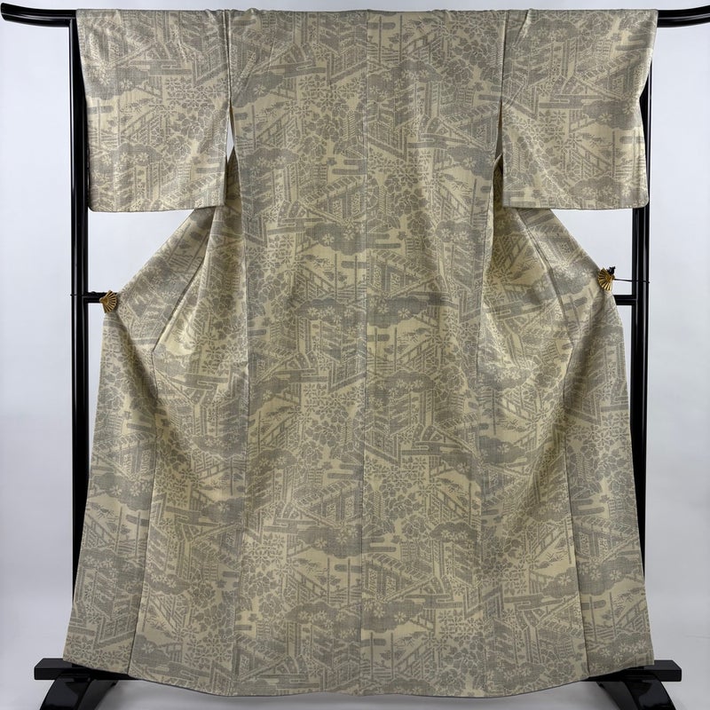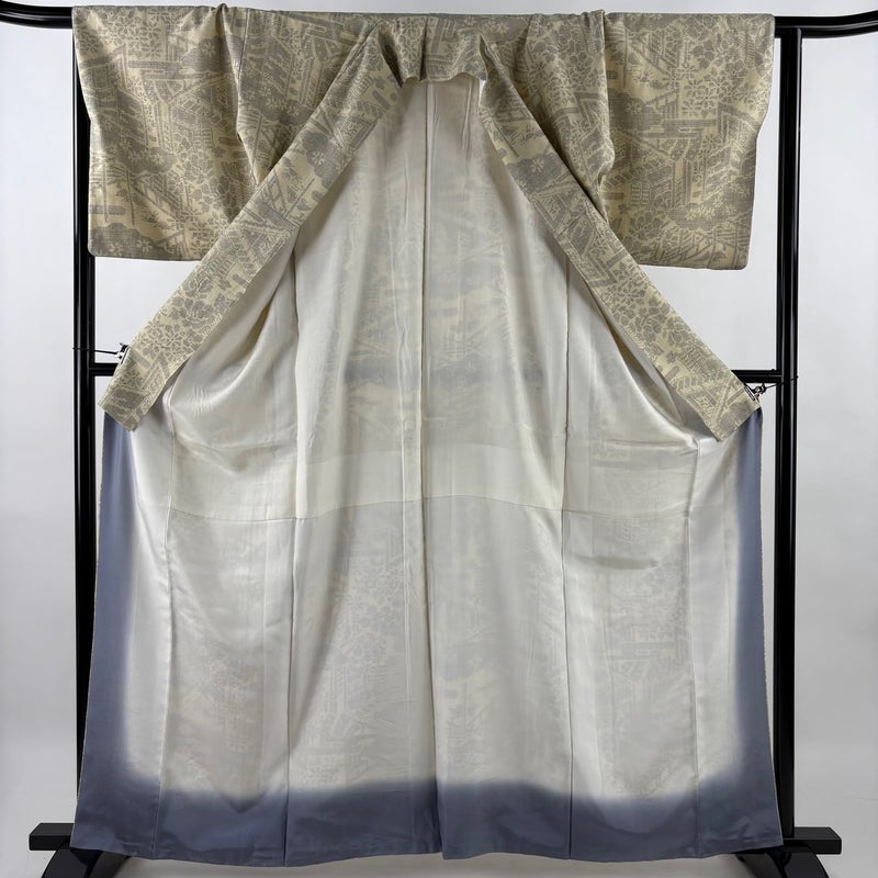【結城紬】 白系 ベージュ 逸品 B 約160cm~約169cm 裄丈66cm (M)size 袖丈47cm 30000- 五万以上