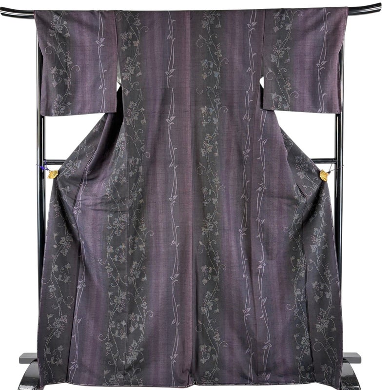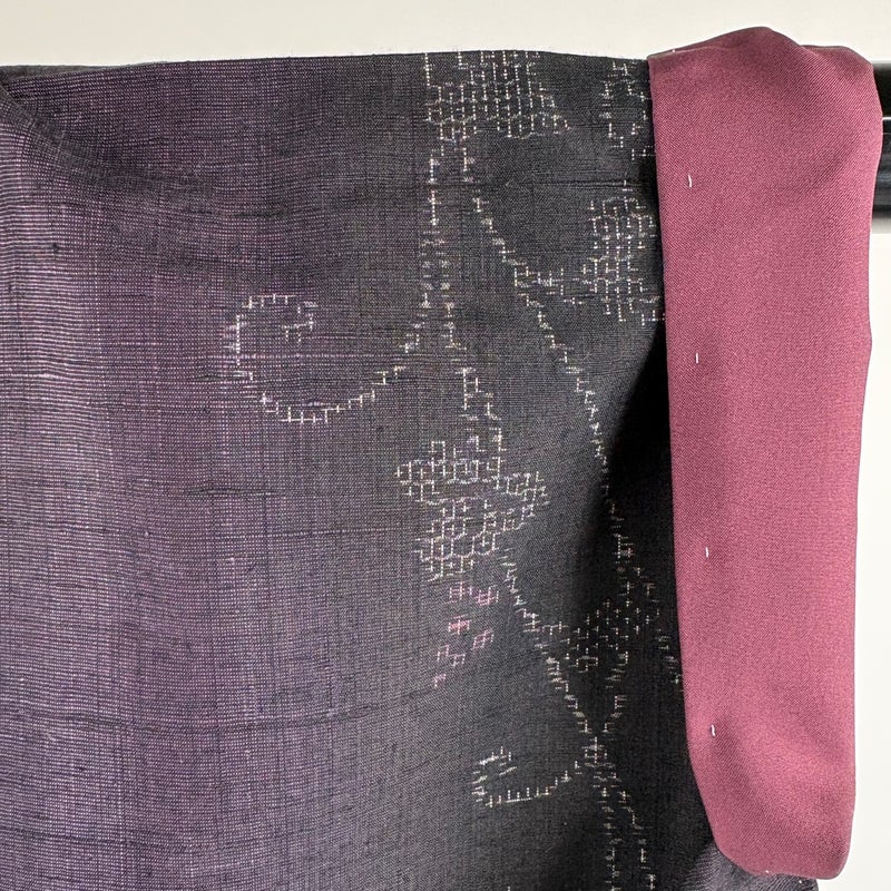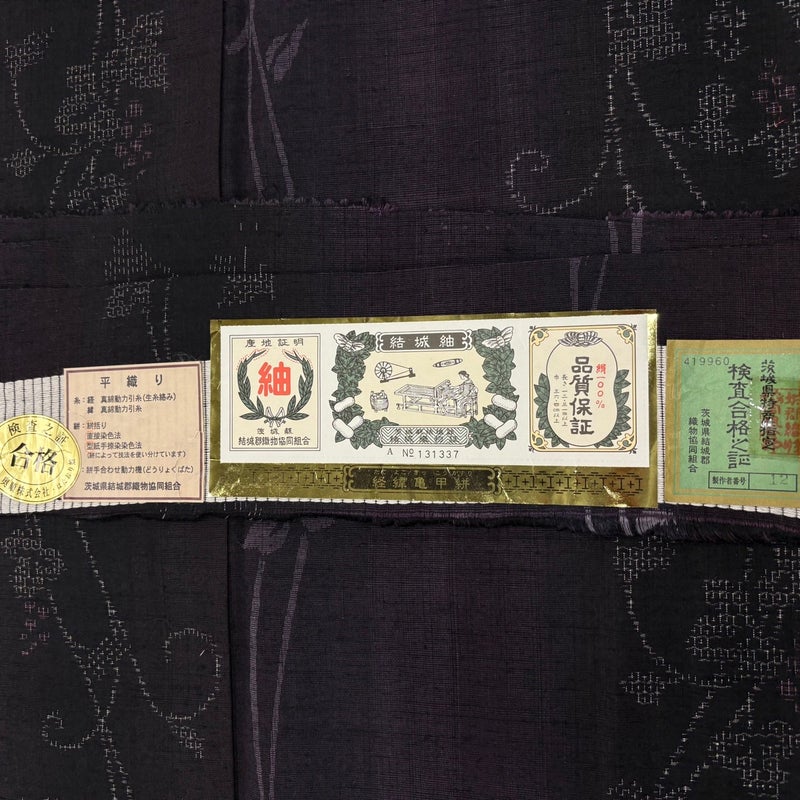 【結城紬】 紫系 濃紫 逸品 A 約170cm~約179cm 裄丈67cm-68cm (L)size 袖丈49cm 30000- 美品 五万以下