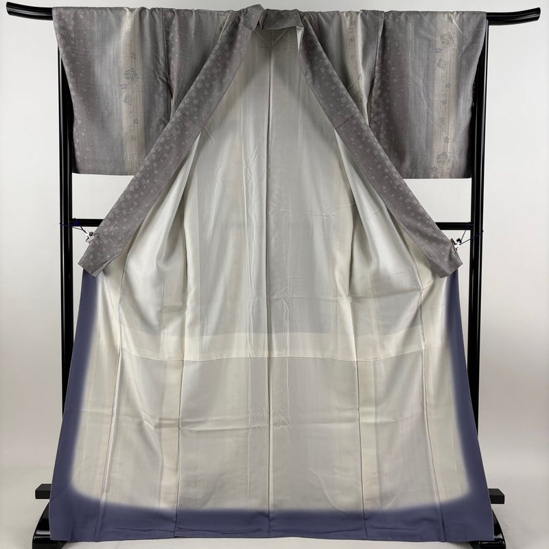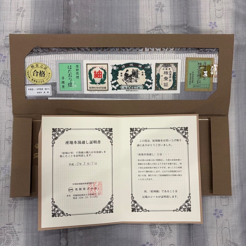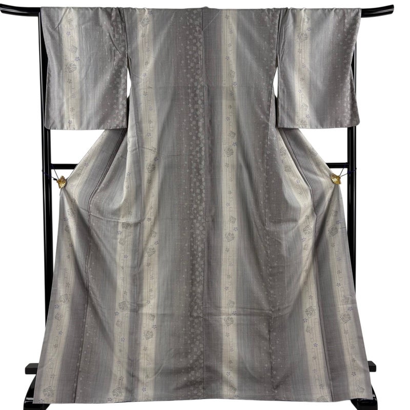 【結城紬】 灰色系 灰色 逸品 B 約170cm~約179cm 裄丈67cm-68cm (L)size 袖丈50cm-60cm 30000- 五万以下