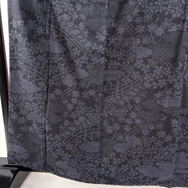 【結城紬】 青系 濃紺 逸品 A 約160cm~約169cm 裄丈65cm (M)size 袖丈49cm 30000- 美品 五万以上