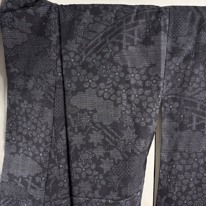 茨城県結城市と栃木県小山市周辺で生産される結城紬です。 結城独特の柔らかい温かみのある肌触りで、暖かく軽くて着心地もよいです。 身丈を+2.0cm程、現在の長さから伸ばせます。 裄丈はこれ以上伸ばすことができません。 衿裏に線シミ、衿裏にホックシミがございます。 リユース品としては目立った染み傷なく、状態の良いお品でございます。 ※なお、厳しく商品の状態確認を行っておりますが、記載の汚れ以外にも見落とし箇所がある可能性がある旨ご了承いただけますと幸いです。 沢山の商品の中からご覧いただき誠にありがとうございます。