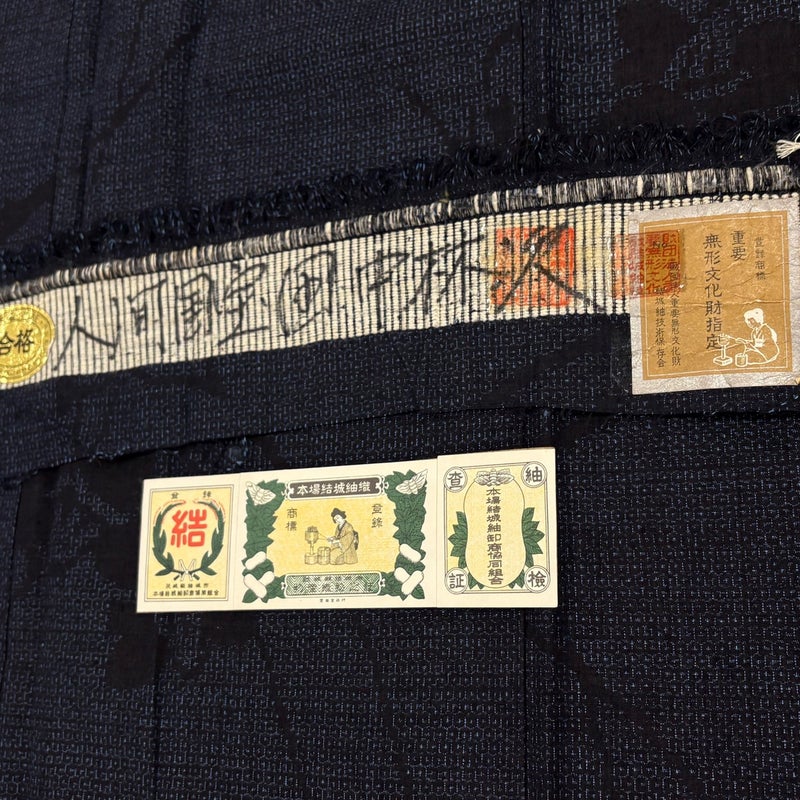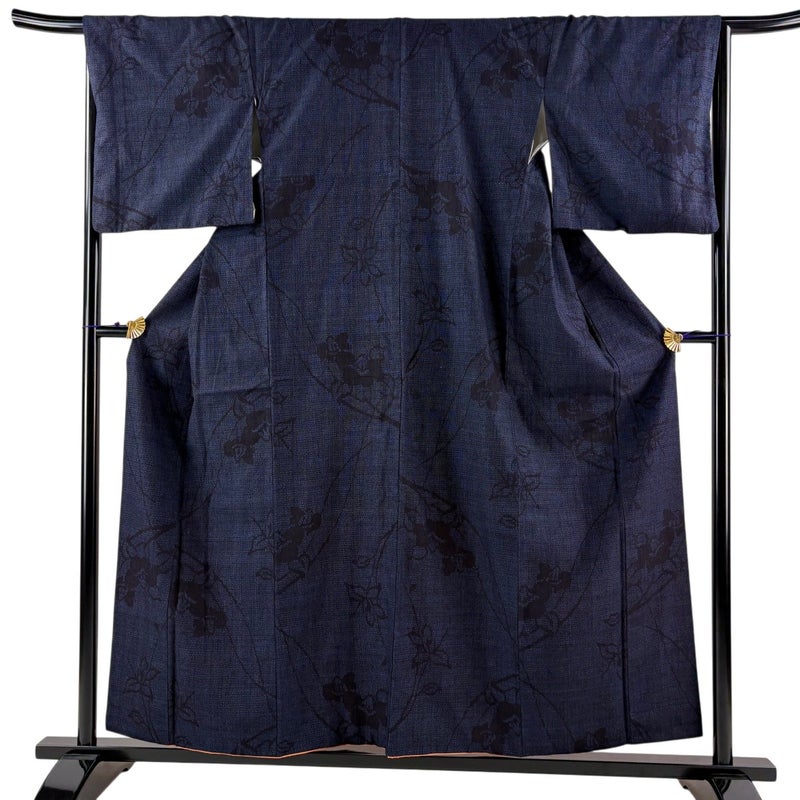 【結城紬】 青系 紺色 逸品 A 約150cm~約159cm 裄丈66cm (M)size 袖丈48cm 30000- 美品 五万以上