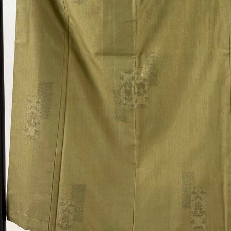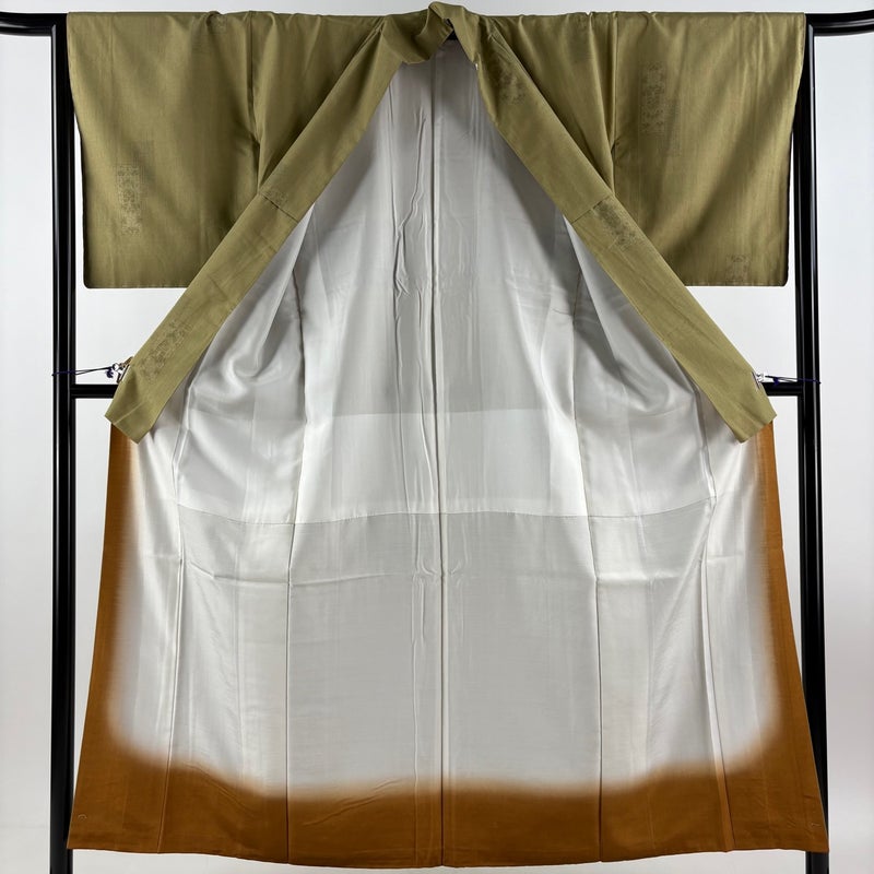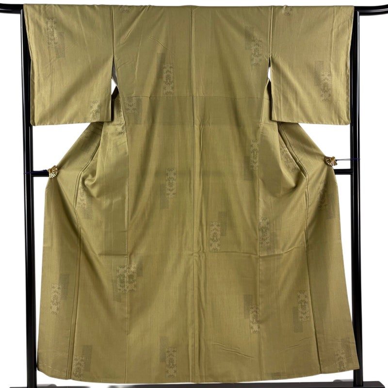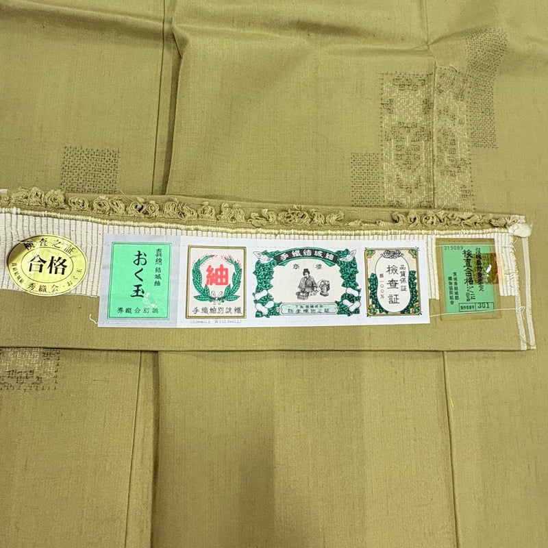 【結城紬】 緑系 鶯色 逸品 A 約150cm~約159cm 裄丈63cm-64cm (M)size 袖丈49cm 30000- 美品 五万以上