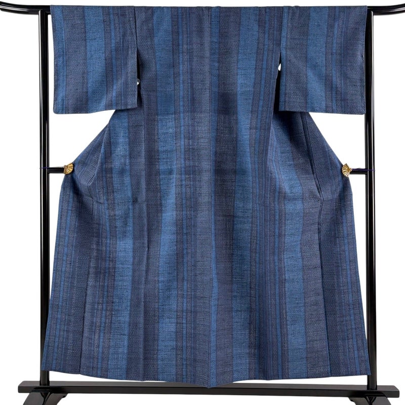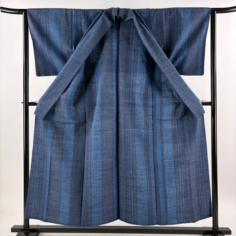 【結城紬】 灰色系 青灰色 逸品 A 約150cm~約159cm 裄丈63cm-64cm (S)size 袖丈47cm 30000- 美品 五万以下