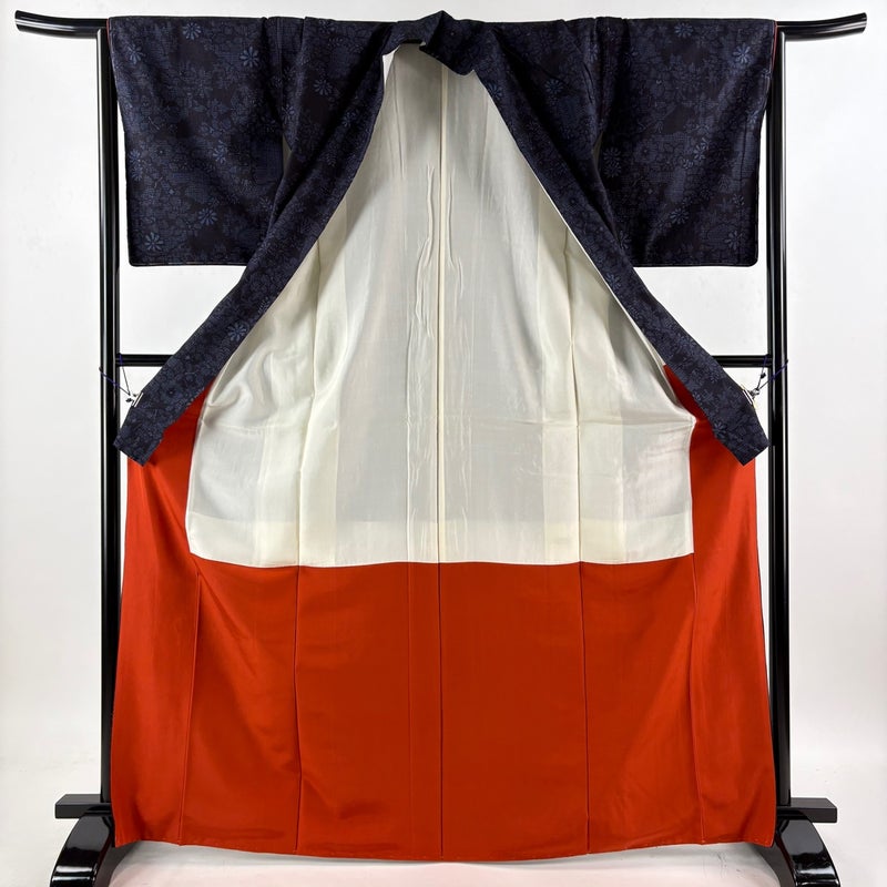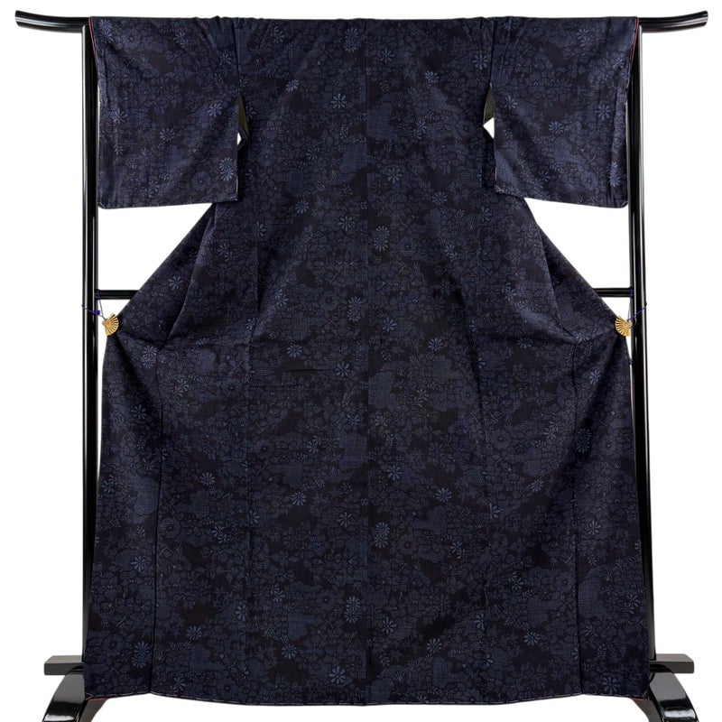 【結城紬】 青系 濃紺 逸品 A 約160cm~約169cm 裄丈65cm (M)size 袖丈48cm 30000- 美品 五万以上