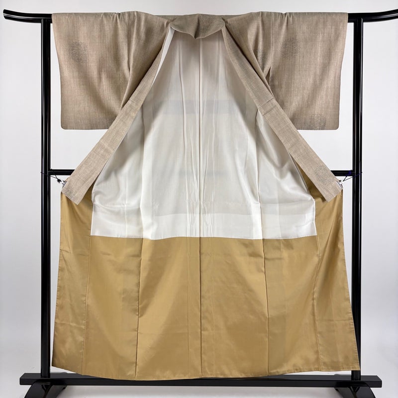 【結城紬】 茶系 薄茶色 逸品 A 約150cm~約159cm 裄丈62cm以下 (S)size 袖丈49cm 30000- 美品 五万以上