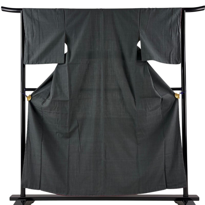 【結城紬】 黒系 墨色 逸品 A 約150cm~約159cm 裄丈65cm (M)size 袖丈49cm 30000- 美品 五万以上