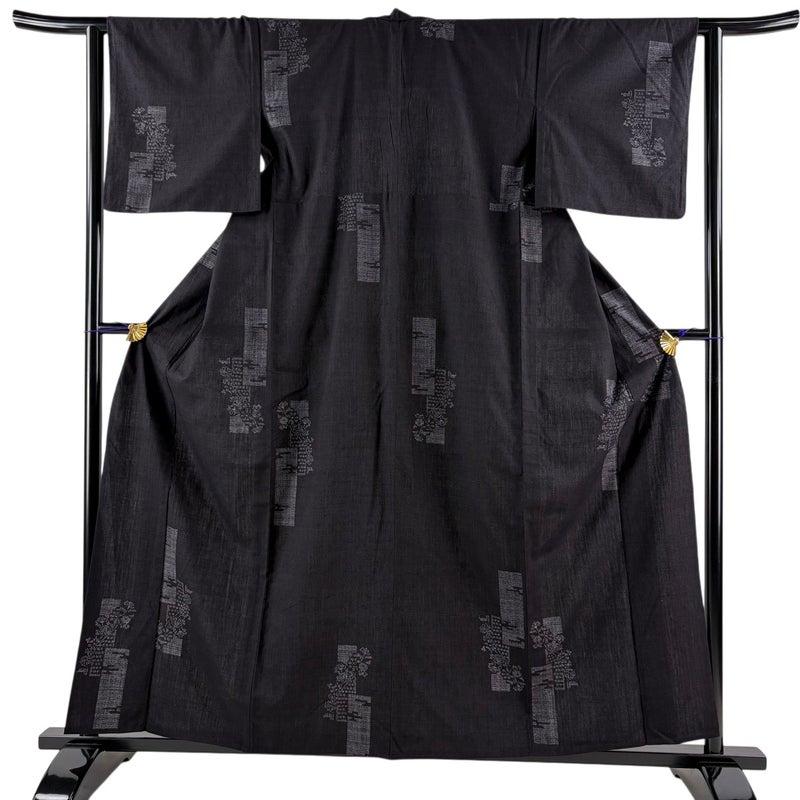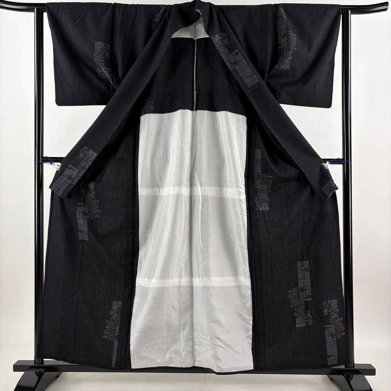 【結城紬】 黒系 黒 逸品 B 約150cm~約159cm 裄丈62cm以下 (S)size 袖丈46cm以下 30000- 五万以上