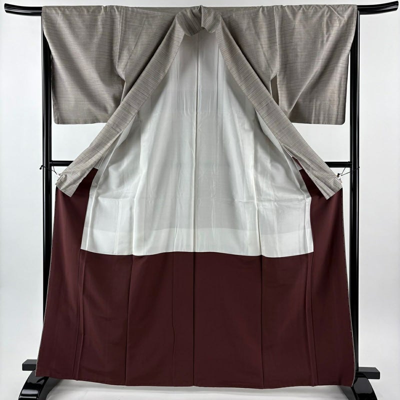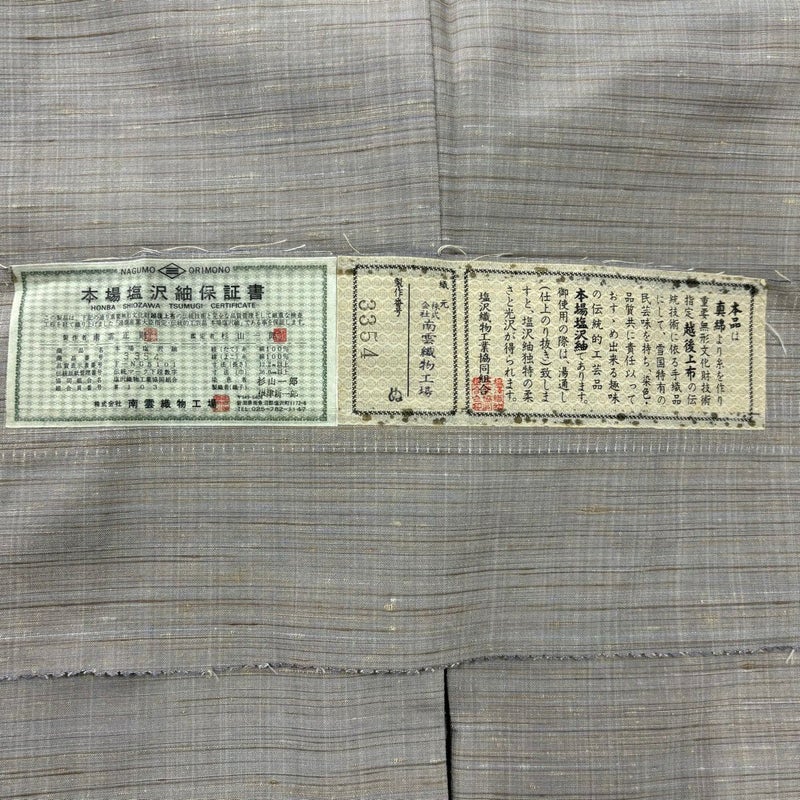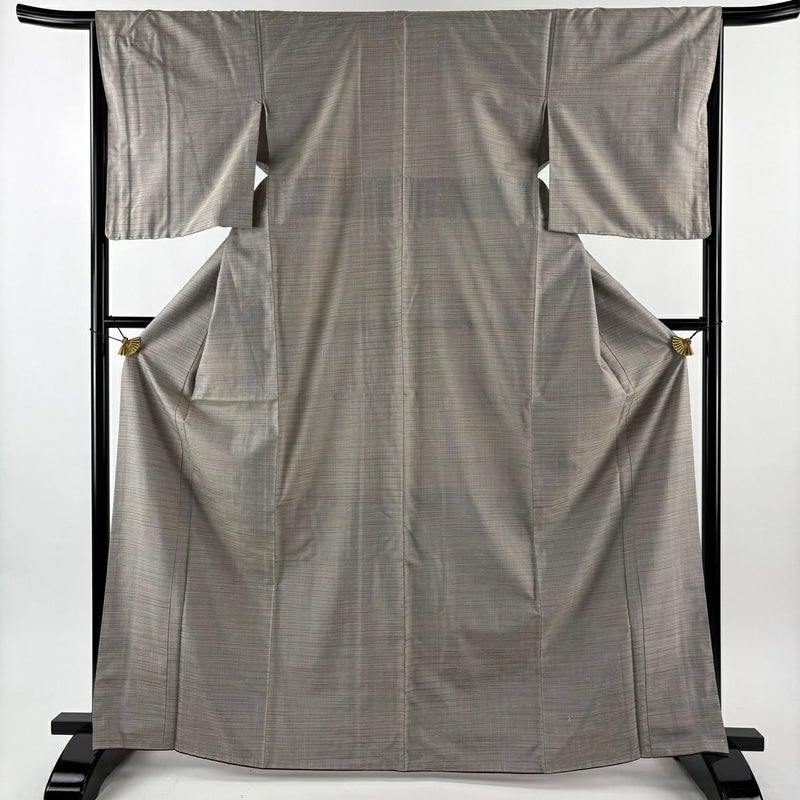 【塩沢紬】 灰色系 灰茶 逸品 A 約160cm~約169cm 裄丈66cm (M)size 袖丈50cm-60cm 30000- 美品 五万以下