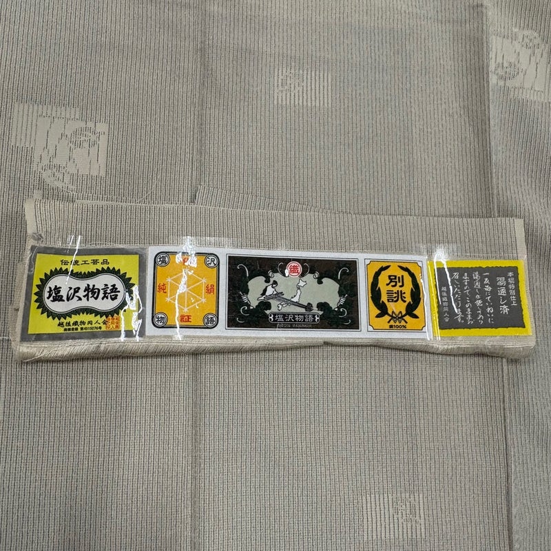 【塩沢紬】 白系 ベージュ 名品 A 約150cm~約159cm 裄丈66cm (M)size 袖丈48cm 9990-29990 美品 二万以下