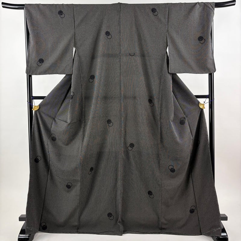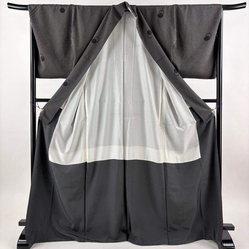 【塩沢紬】 灰色系 黒灰 名品 B 約170cm~約179cm 裄丈67cm-68cm (L)size 袖丈50cm-60cm 9990-29990 二万以下