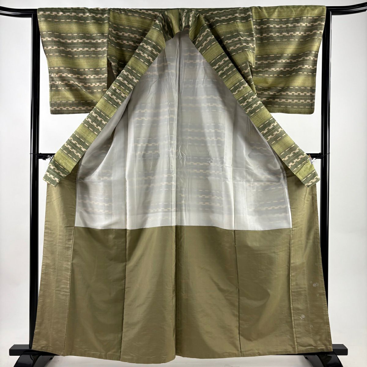 紬とは何も染められていない反物の白生地に加工を施す染め着物と違い、糸を先に染めその色糸の重なりで柄や色合いを表現する織り着物の事です。 紬と一言で言っても日本各地で自生している植物の染料を使用して糸を染める事が多く、紬に使用される糸の種類も多岐にわたるためかなりの種類があります。 しかし元々はクズ繭など商品にならない繭を使用されて作られた着物のため、街着など基本的にはカジュアルな着物となってしまいます。