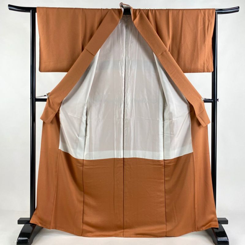 様々なシーンに活躍することができる色無地でございます。 帯や紋の有無でカジュアルにもフォーマルにも着る事が出来るので、一枚持っていると大変重宝します。 ※身丈・裄丈の縫込みの長さは測っておりません。一つ紋の染め抜き紋です。 後身頃の背中付近にシワがございます。 衿裏と胴裏に下糸の変色がございます。 リユース品としては目立った染み傷なく、大変状態の良いお品でございます。 沢山の商品の中からご覧いただき誠にありがとうございます。