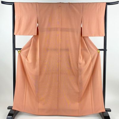 【色無地】 赤系 ピンクベージュ 優品 A 約160cm~約169cm 裄丈63cm-64cm (M)size 袖丈47cm -3980 美品 二万以下