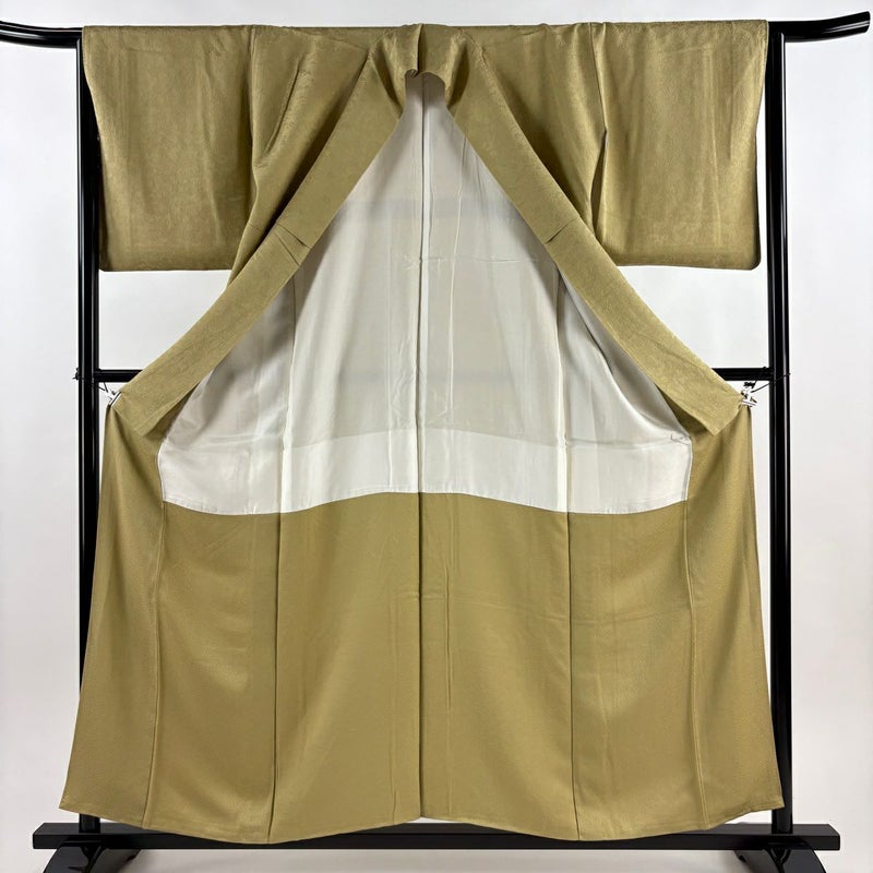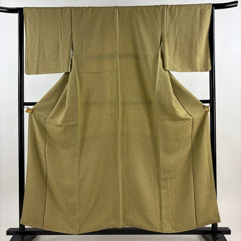 様々なシーンに活躍することができる色無地でございます。 帯や紋の有無でカジュアルにもフォーマルにも着る事が出来るので、一枚持っていると大変重宝します。 ※身丈・裄丈の縫込みの長さは測っておりません。一つ紋の縫い紋です。 上前にシミ、衿周りや両袖口中に薄汚れ、表地所々にシワがございます。 衿裏と胴裏にシミがございます。 リユース品としては良い状態で、まだまだご活用頂けると思われます。 ※なお、厳しく商品の状態確認を行っておりますが、記載の汚れ以外にも見落とし箇所がある可能性がある旨ご了承いただけますと幸いです。 沢山の商品の中からご覧いただき誠にありがとうございます。
