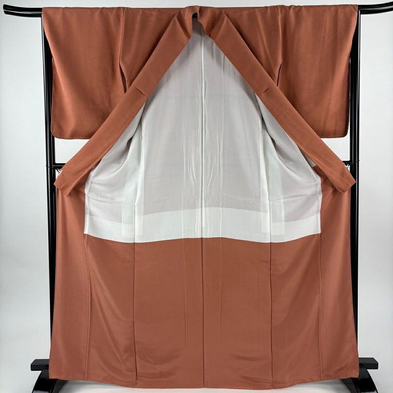 【色無地】 赤系 赤茶 秀品 A 約160cm~約169cm 裄丈66cm (M)size 袖丈50cm-60cm 7990-9980 美品 二万以下