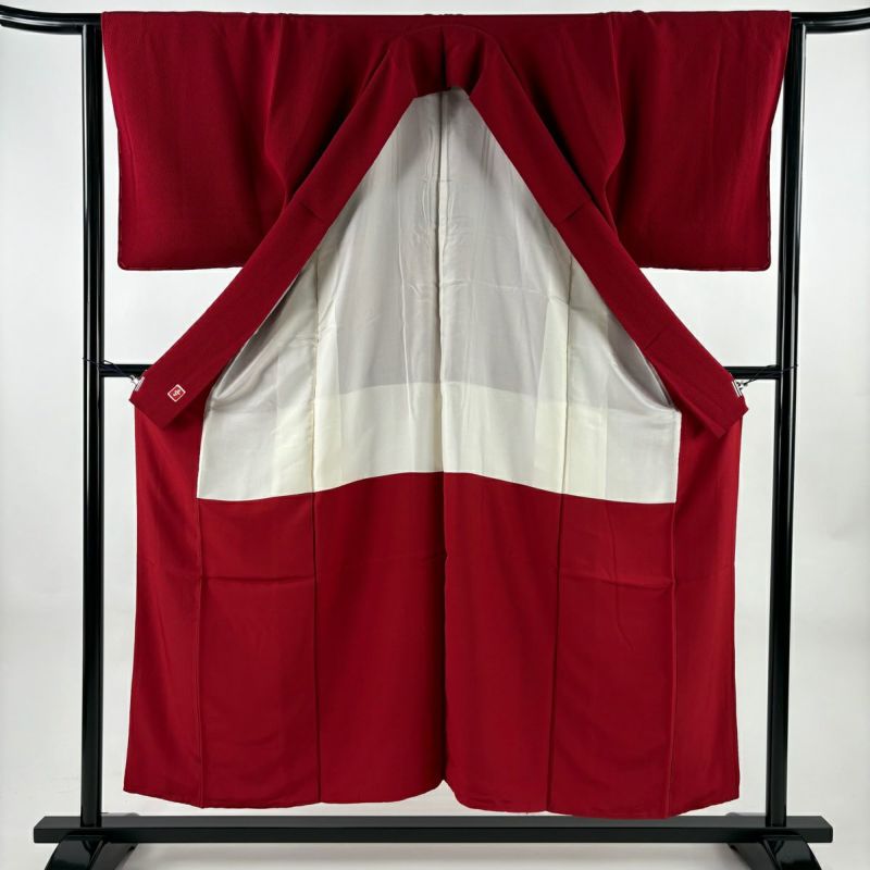 【色無地】 赤系 赤 秀品 A 約150cm~約159cm 裄丈63cm-64cm (M)size 袖丈48cm 7990-9980 美品 二万以下