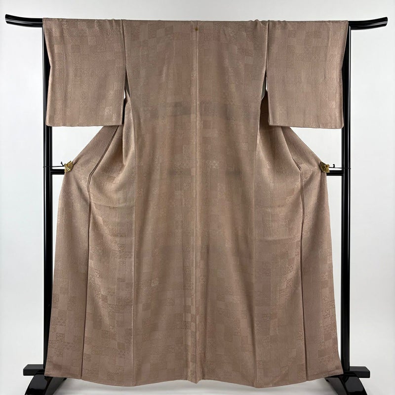 【色無地】 赤系 サーモンピンク 秀品 A 約160cm~約169cm 裄丈67cm-68cm (M)size 袖丈49cm 7990-9980 美品 二万以下