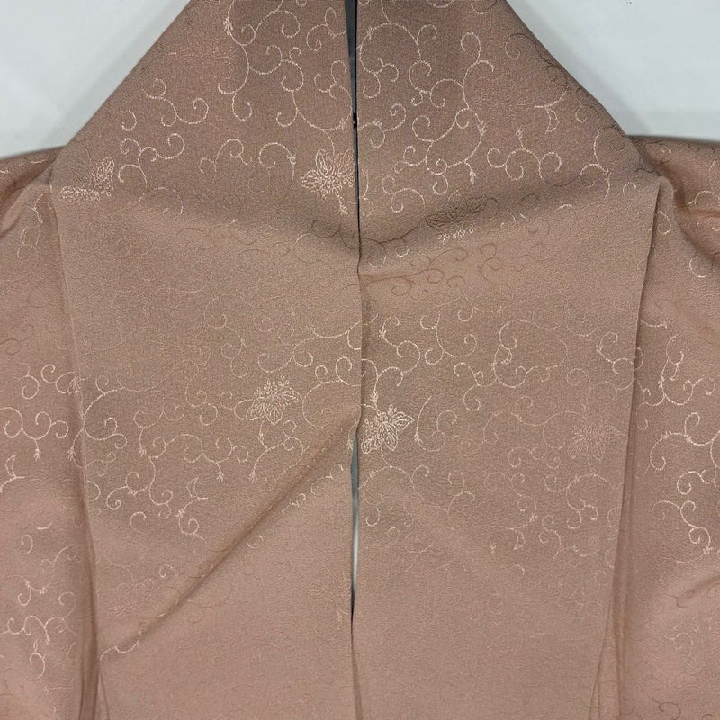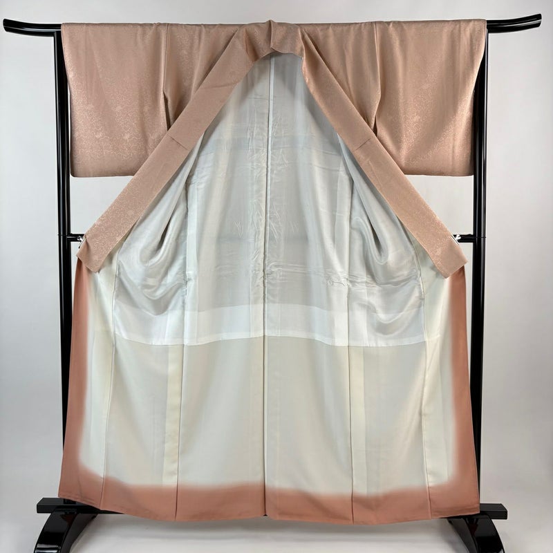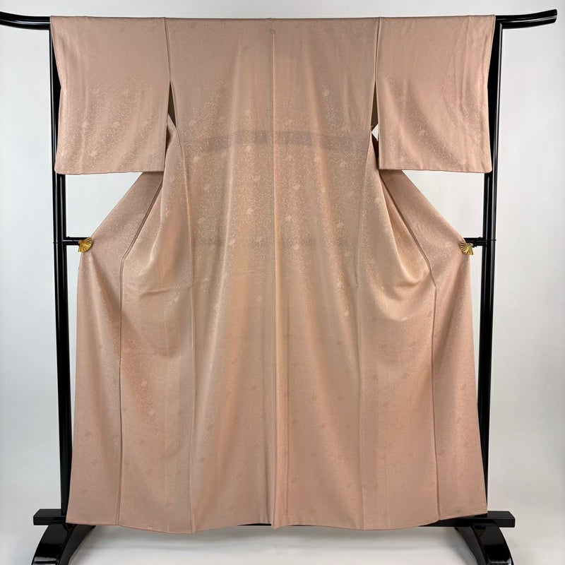 【色無地】 赤系 ピンクベージュ 秀品 A 約160cm~約169cm 裄丈65cm (M)size 袖丈48cm 7990-9980 美品 二万以下