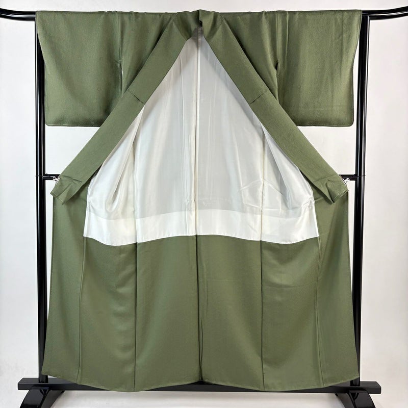 【色無地】 緑系 深緑 秀品 B 約150cm~約159cm 裄丈63cm-64cm (M)size 袖丈47cm 4000-7980 二万以下