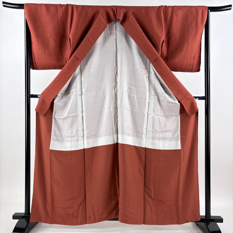 【色無地】 赤系 赤茶 優品 A 約150cm~約159cm 裄丈67cm-68cm (L)size 袖丈49cm 4000-7980 美品 二万以下