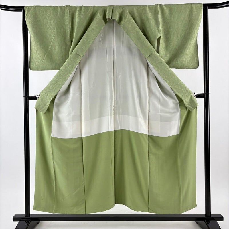 【色無地】 緑系 黄緑色 秀品 C 約150cm~約159cm 裄丈63cm-64cm (M)size 袖丈48cm 4000-7980 二万以下