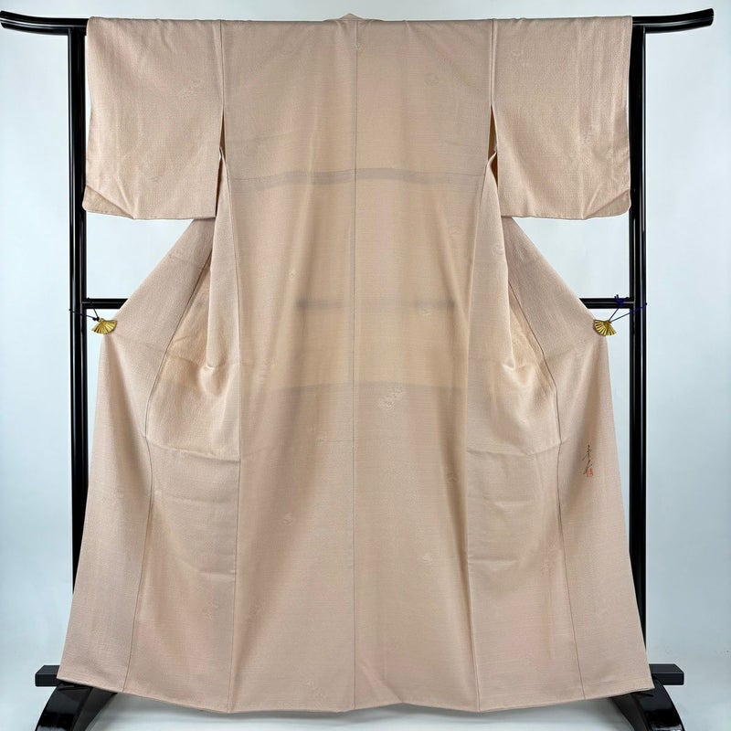 【色無地】 赤系 ピンクベージュ 秀品 B 約160cm~約169cm 裄丈63cm-64cm (M)size 袖丈48cm 4000-7980 二万以下