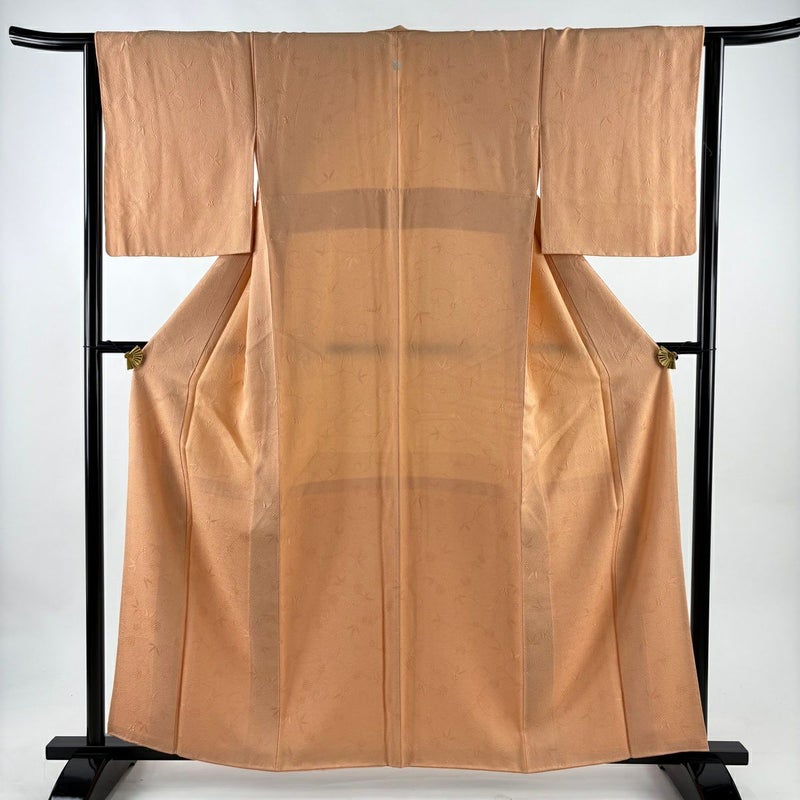 【色無地】 赤系 薄オレンジ 優品 B 約150cm~約159cm 裄丈63cm-64cm (S)size 袖丈48cm -3980 二万以下