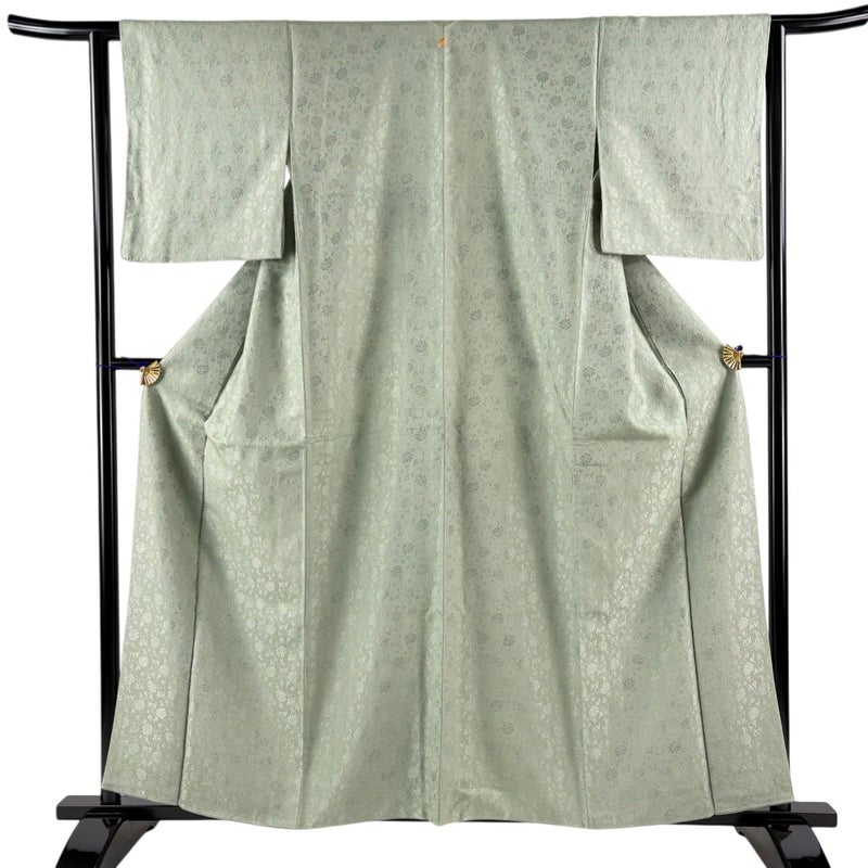 【色無地】 灰色系 灰緑 秀品 A 約150cm~約159cm 裄丈63cm-64cm (S)size 袖丈49cm 7990-9980 美品 二万以下