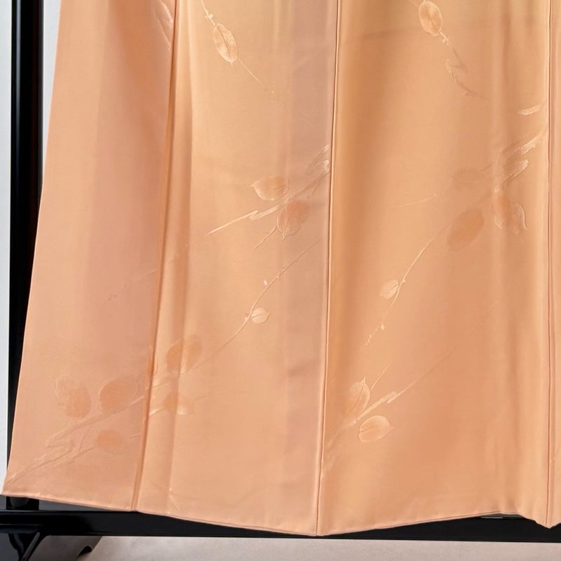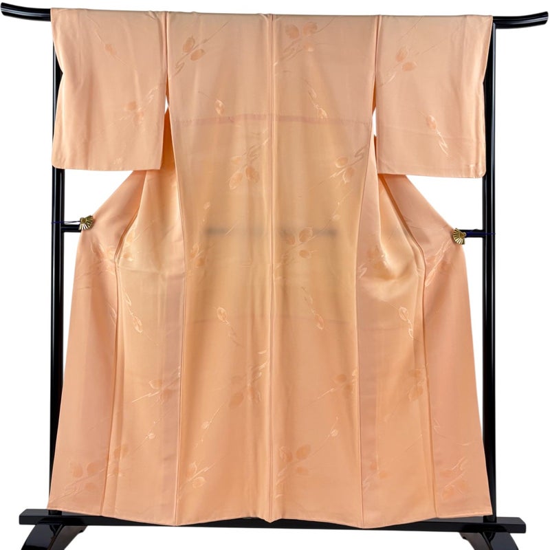 【色無地】 赤系 薄オレンジ 優品 A 約150cm~約159cm 裄丈66cm (M)size 袖丈50cm-60cm 4000-7980 美品 二万以下