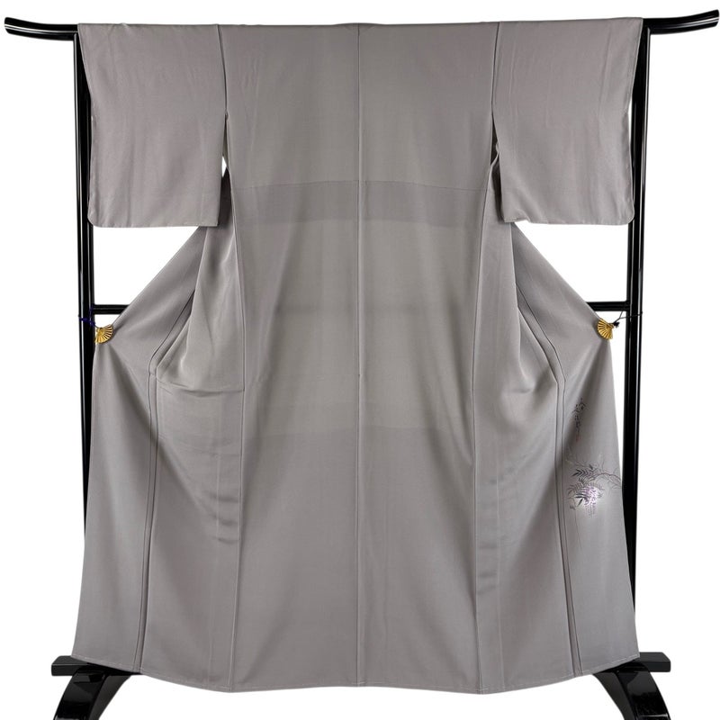 【色無地】 灰色系 灰色 秀品 A 約160cm~約169cm 裄丈65cm (M)size 袖丈48cm 7990-9980 美品 二万以下