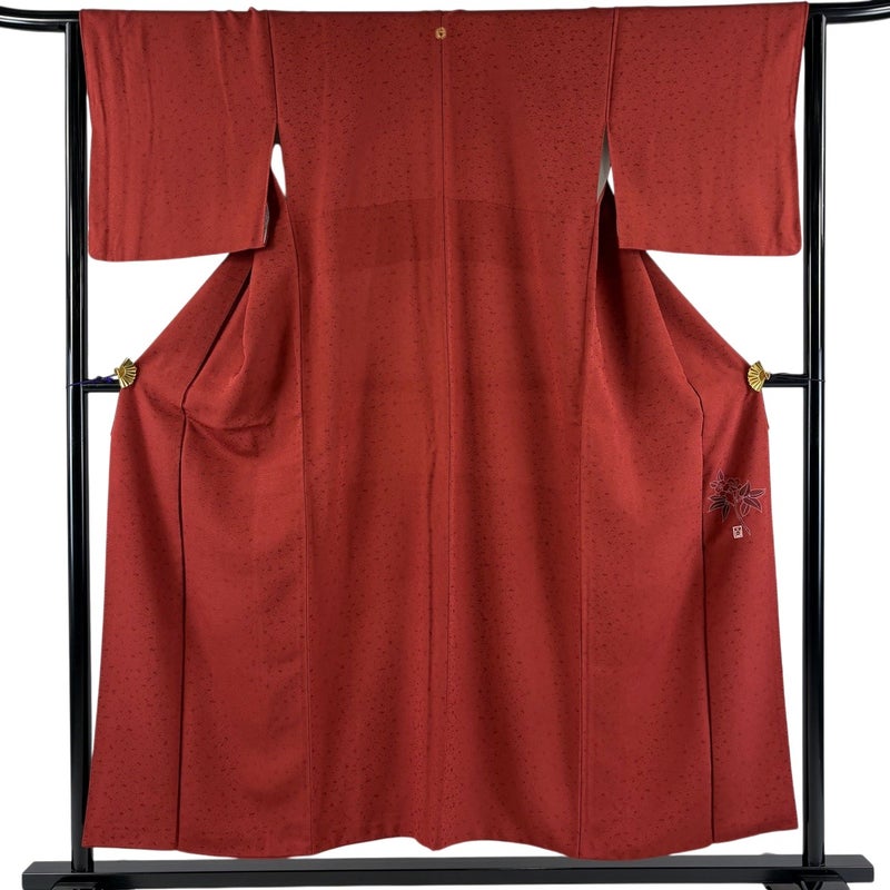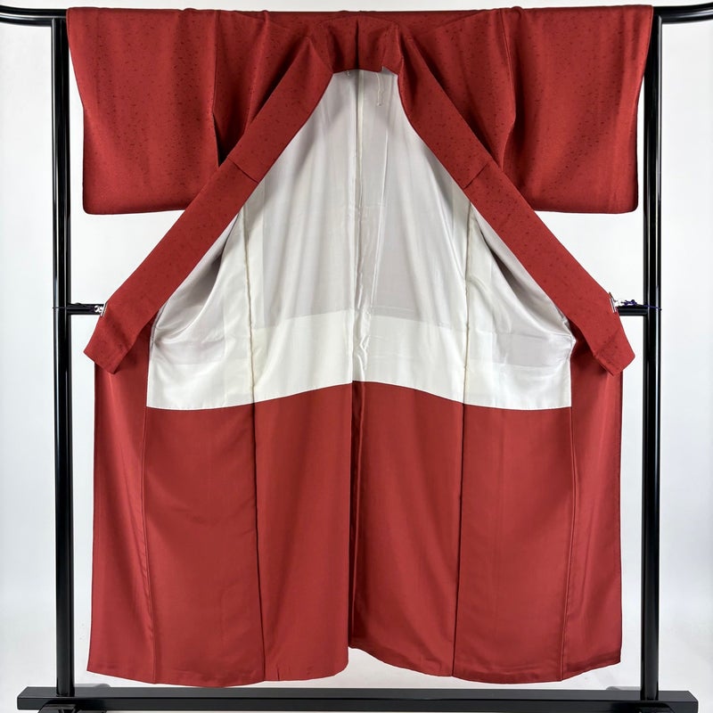 【色無地】 赤系 えんじ色 秀品 A 約150cm~約159cm 裄丈63cm-64cm (S)size 袖丈46cm以下 7990-9980 美品 二万以下