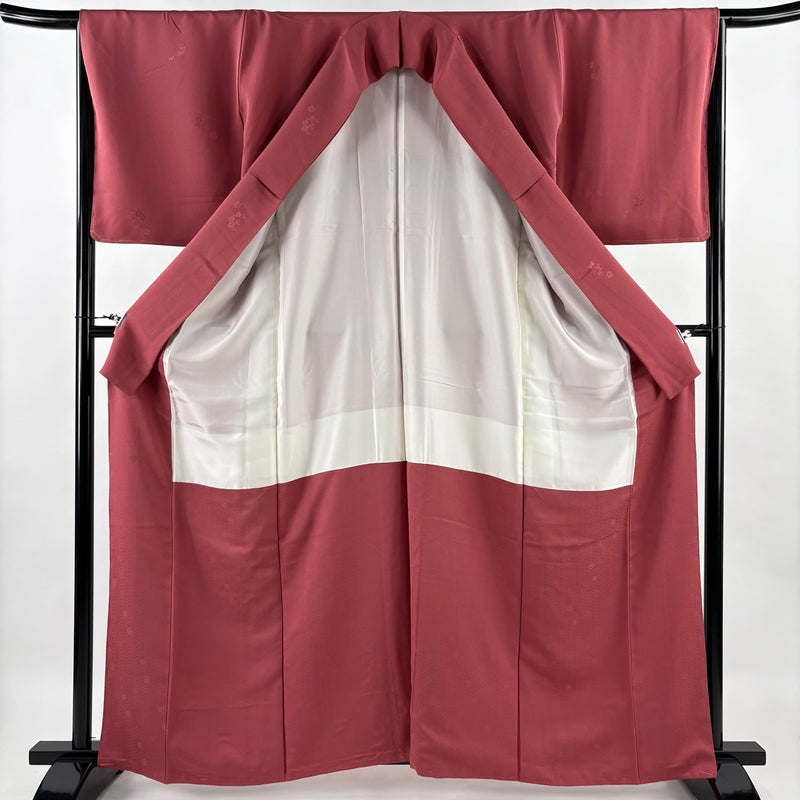 【色無地】 赤系 濃ピンク 秀品 A 約160cm~約169cm 裄丈66cm (M)size 袖丈49cm 7990-9980 美品 二万以下