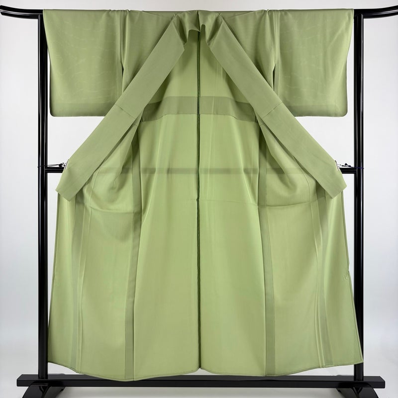 【色無地】 緑系 薄緑 秀品 B 約150cm~約159cm 裄丈63cm-64cm (M)size 袖丈46cm以下 9990-29990 二万以下