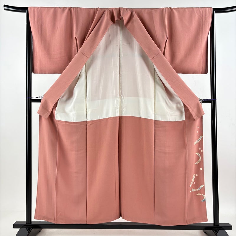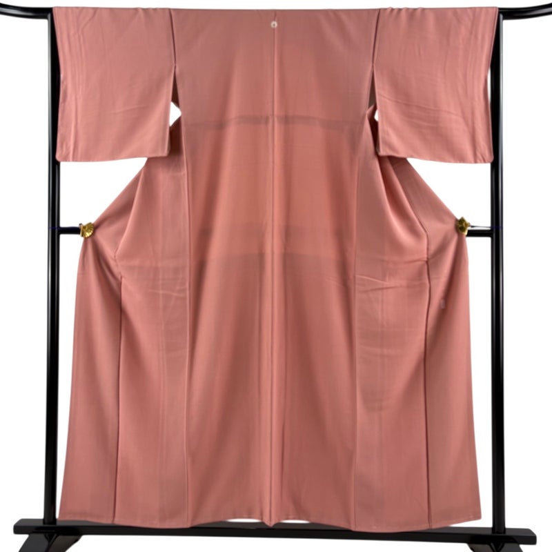 【色無地】 赤系 ピンクベージュ 秀品 B 約150cm~約159cm 裄丈66cm (M)size 袖丈48cm 4000-7980 二万以下