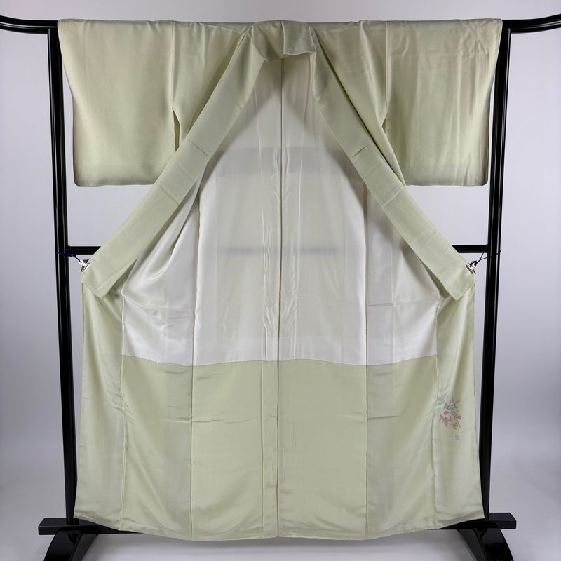 【色無地】 緑系 黄緑色 秀品 B 約160cm~約169cm 裄丈63cm-64cm (M)size 袖丈49cm 4000-7980 二万以下