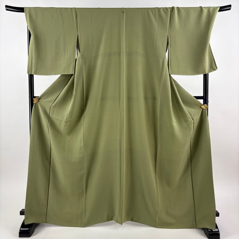 【色無地】 緑系 よもぎ色 優品 B 約160cm~約169cm 裄丈69cm以上 (L)size 袖丈50cm-60cm -3980 二万以下