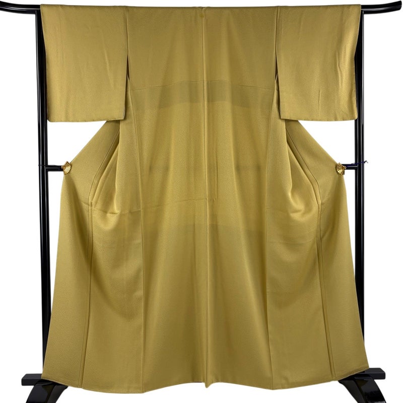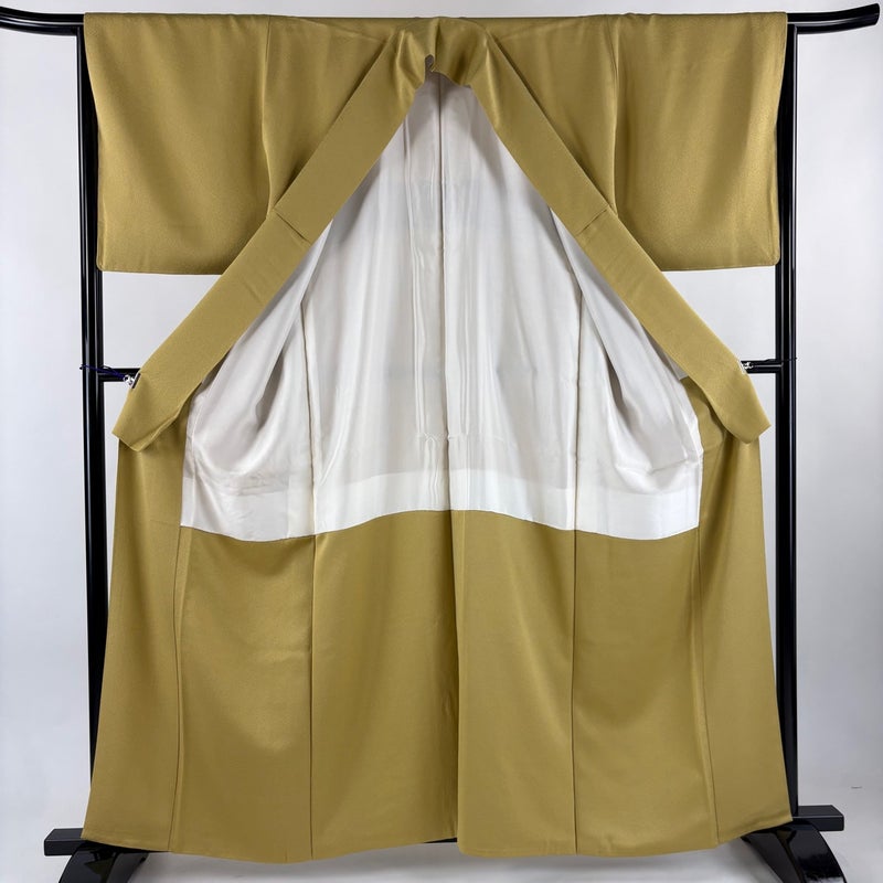 【色無地】 黄色系 薄黄土色 優品 A 約160cm~約169cm 裄丈65cm (M)size 袖丈49cm 4000-7980 美品 二万以下