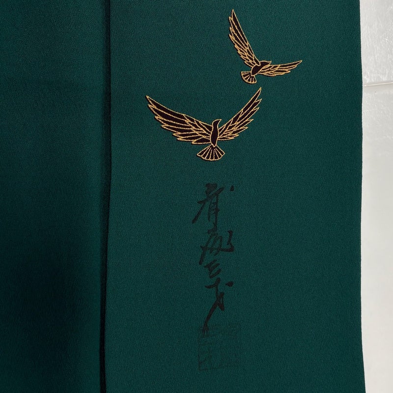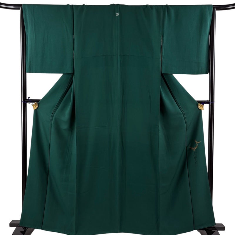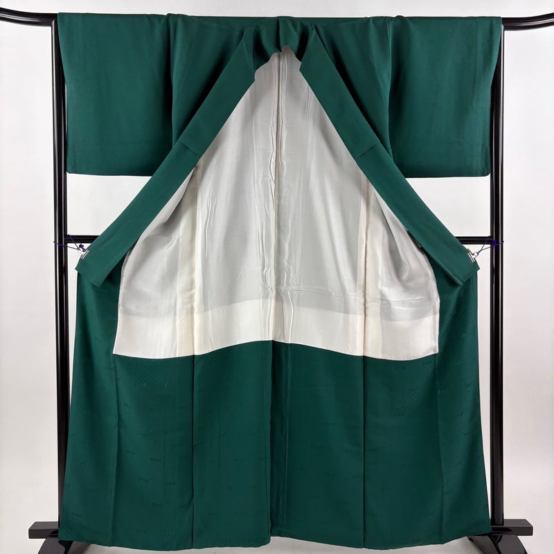 【色無地】 緑系 深緑 秀品 A 約160cm~約169cm 裄丈66cm (M)size 袖丈48cm 7990-9980 美品 二万以下