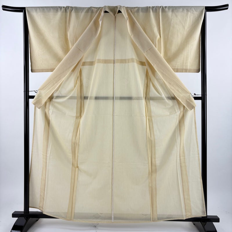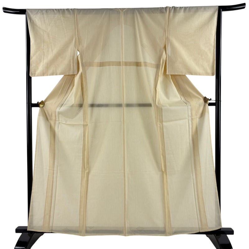 【着物ランク】秀品 【素材】正絹 【身丈】約162.5cm 【裄丈】約66cm 【袖丈】約49.5cm 【袖幅】約34.5cm 【前幅】約25cm 【後幅】約30.5cm 【サイズ】M 【着物仕立て】薄物 【着用時期】7~8月 【状態ランク】ランクB 【着物着用シーン】披露宴、パーティー、式典、食事会、お茶会、正月