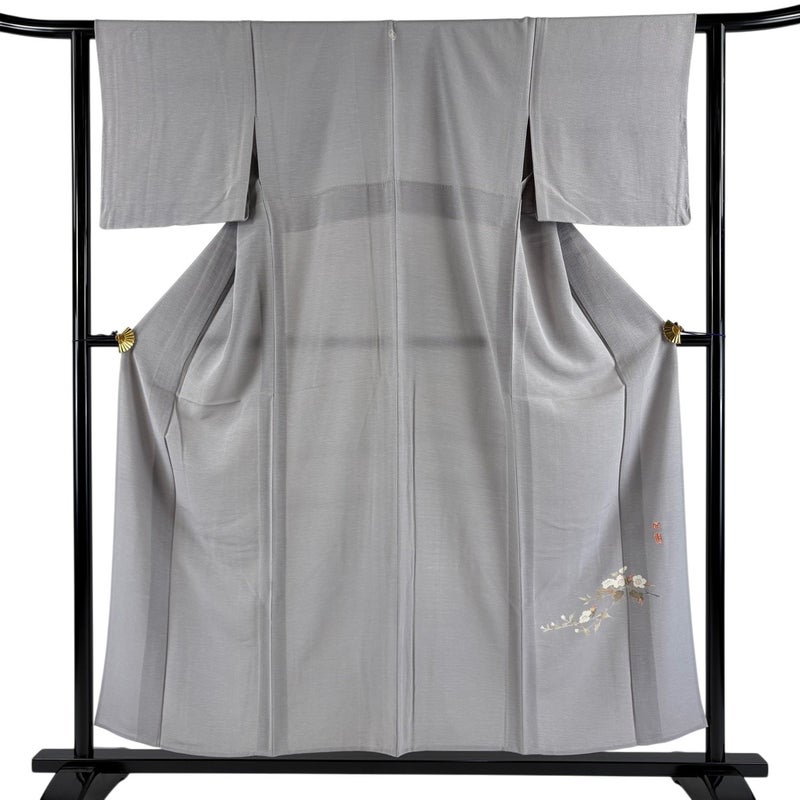 【色無地】 灰色系 灰紫 秀品 B 約150cm~約159cm 裄丈62cm以下 (S)size 袖丈46cm以下 9990-29990 二万以下